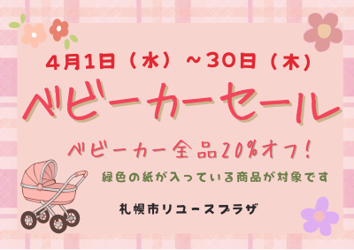 4月はベビーカーが20%オフです!ご検討中の方はぜひご来館ください!