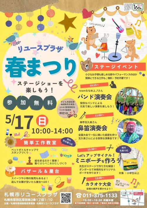 5月17日(日)に「リユースプラザ春まつり」を開催いたします!参加無料です。ぜひお誘いあわせの上ご参加ください♪