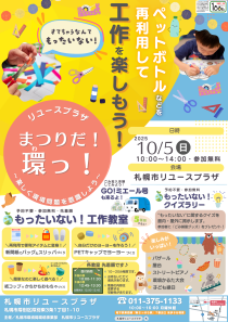 今回は環境のおまつりです。資源物を再利用した簡単工作教室や「もったいない」に関するクイズラリーをお楽しみいただけます♪詳細はイベント・講座欄をご覧ください!
