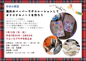 1月12日(月・祝)「海外のペーパーでデコレーションしてオリジナルノートを作ろう」講座を開催します♪
